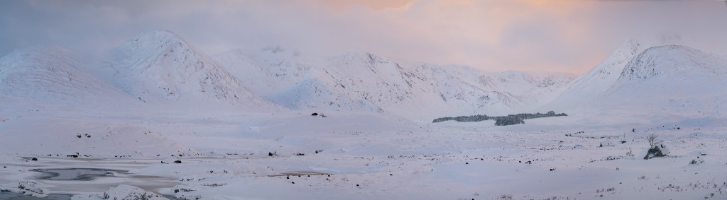 This was after walking about 400m into the snow (harder than it sounds) and just as I was stopping and putting my pack down I saw a lek of grouse settle in the snow just in front of my planned composition. A few moments later, the light did this…