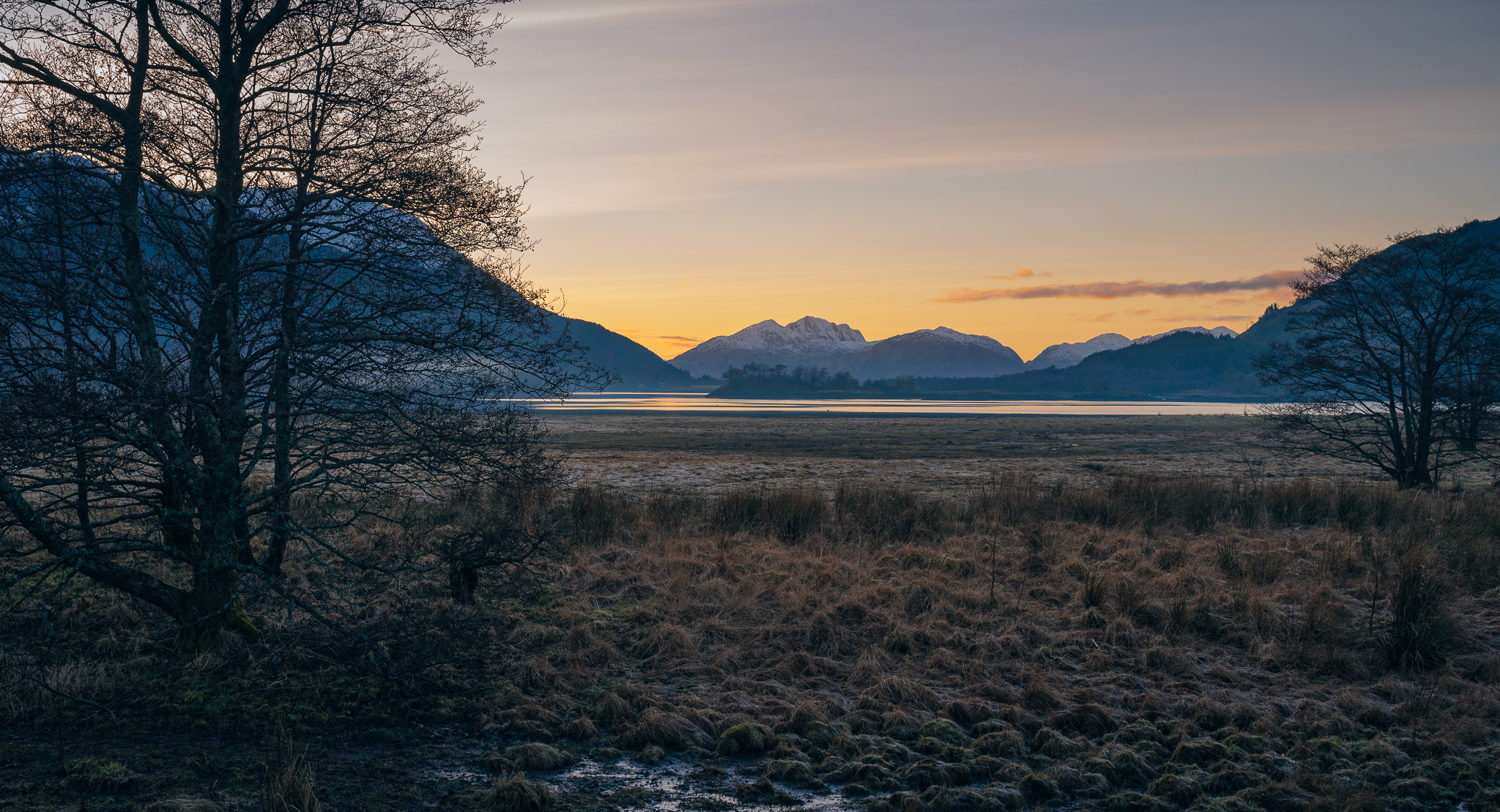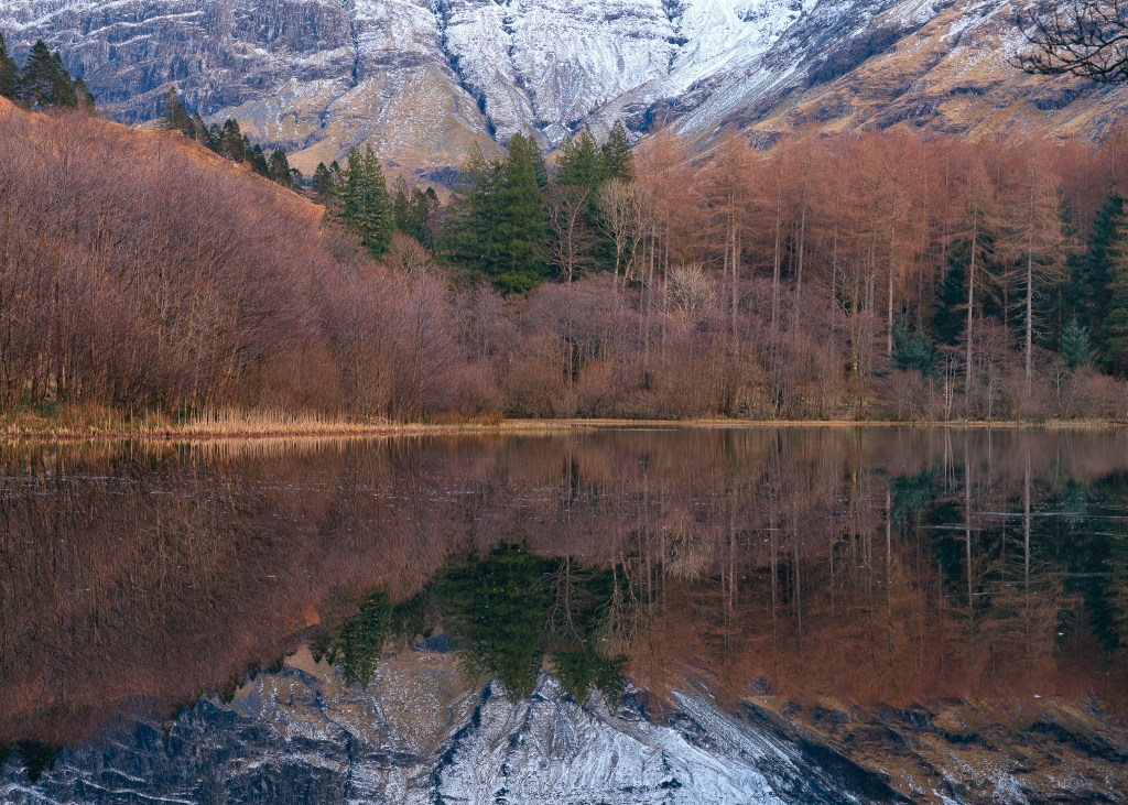 Very still with only a few clouds in the sky meant near perfect reflections so a quick trip to Torren lochan and a photograph of the sunset over Ardgour on the way back.