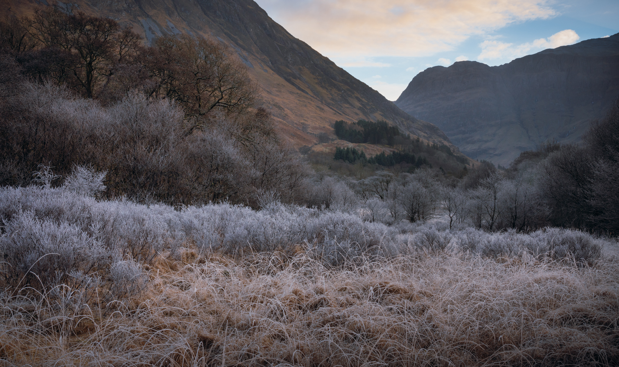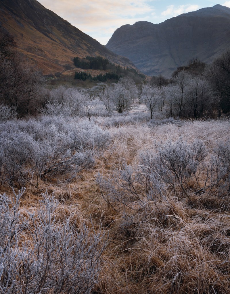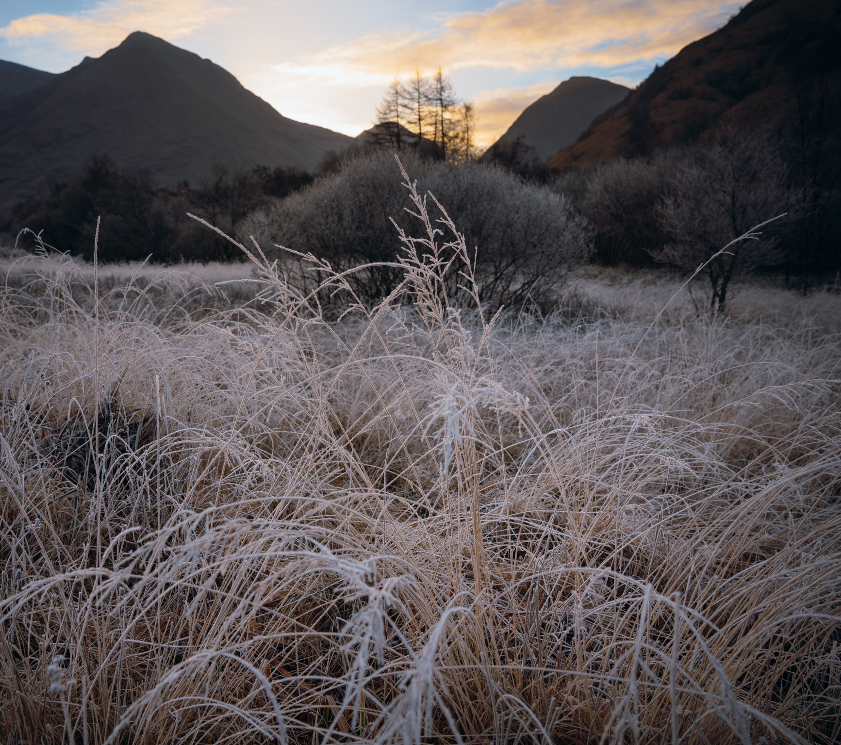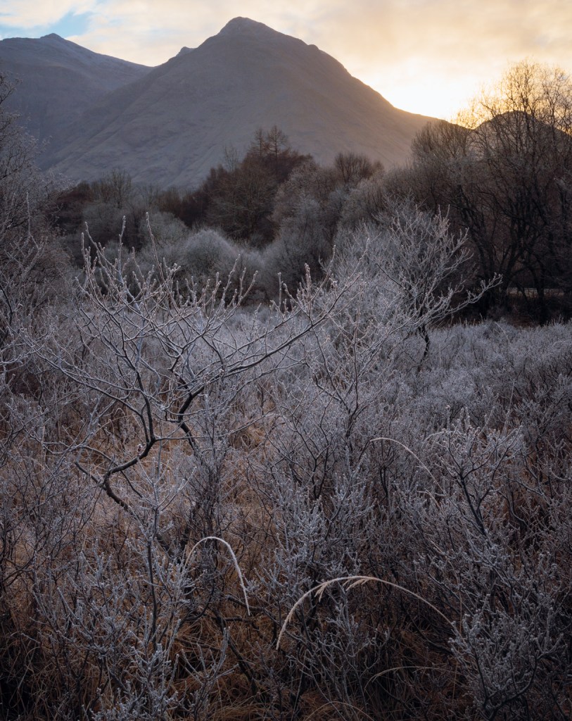 A hard frost this morning but only in some places so I took a walk along the river Coe to find the best bits.